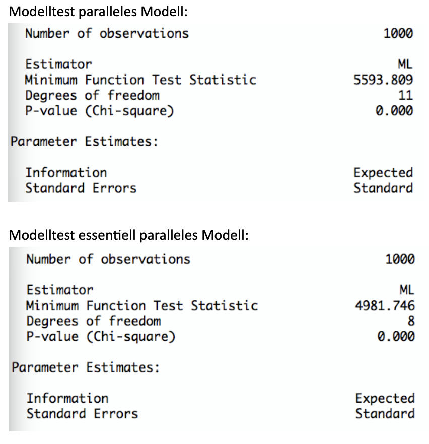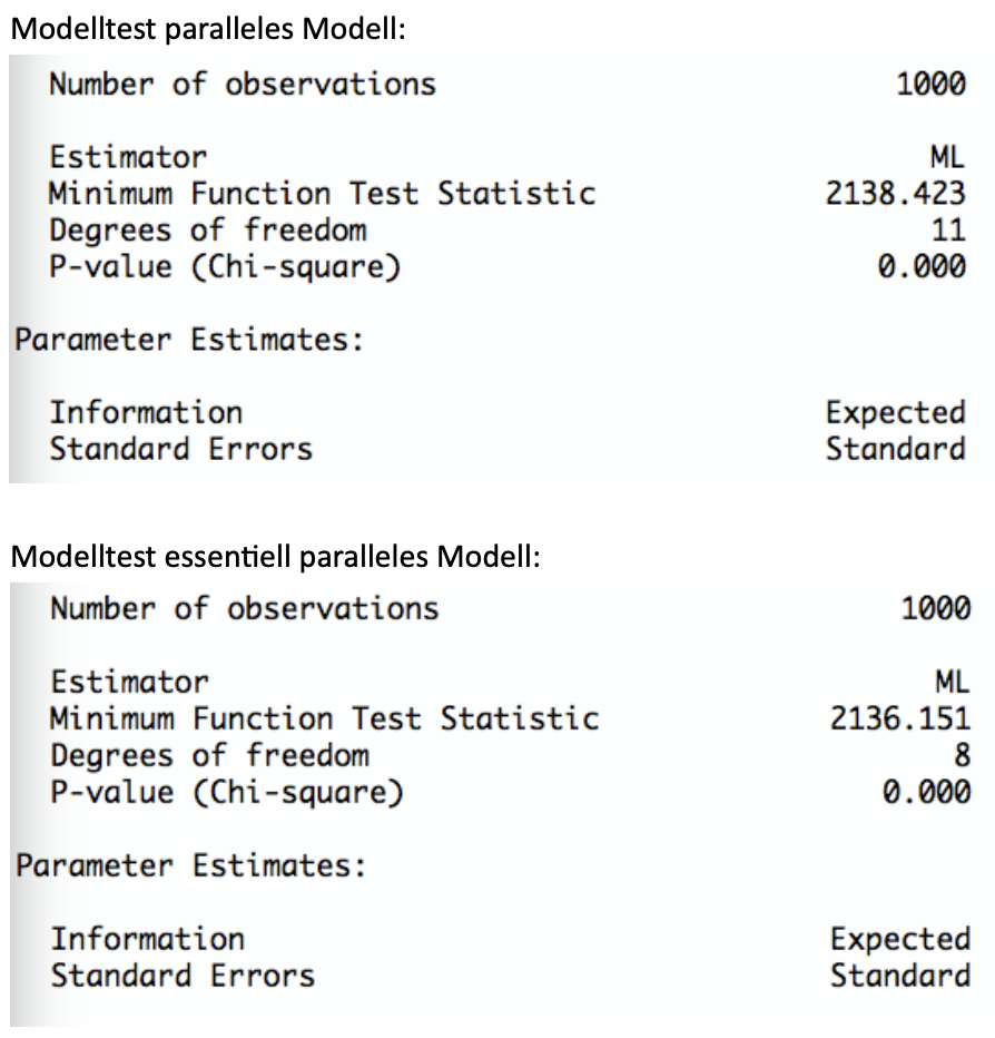 TippLösungParalleles und essentiell paralleles Modell werden abgelehnt, da hier die p-Werte < 0.05 sind.