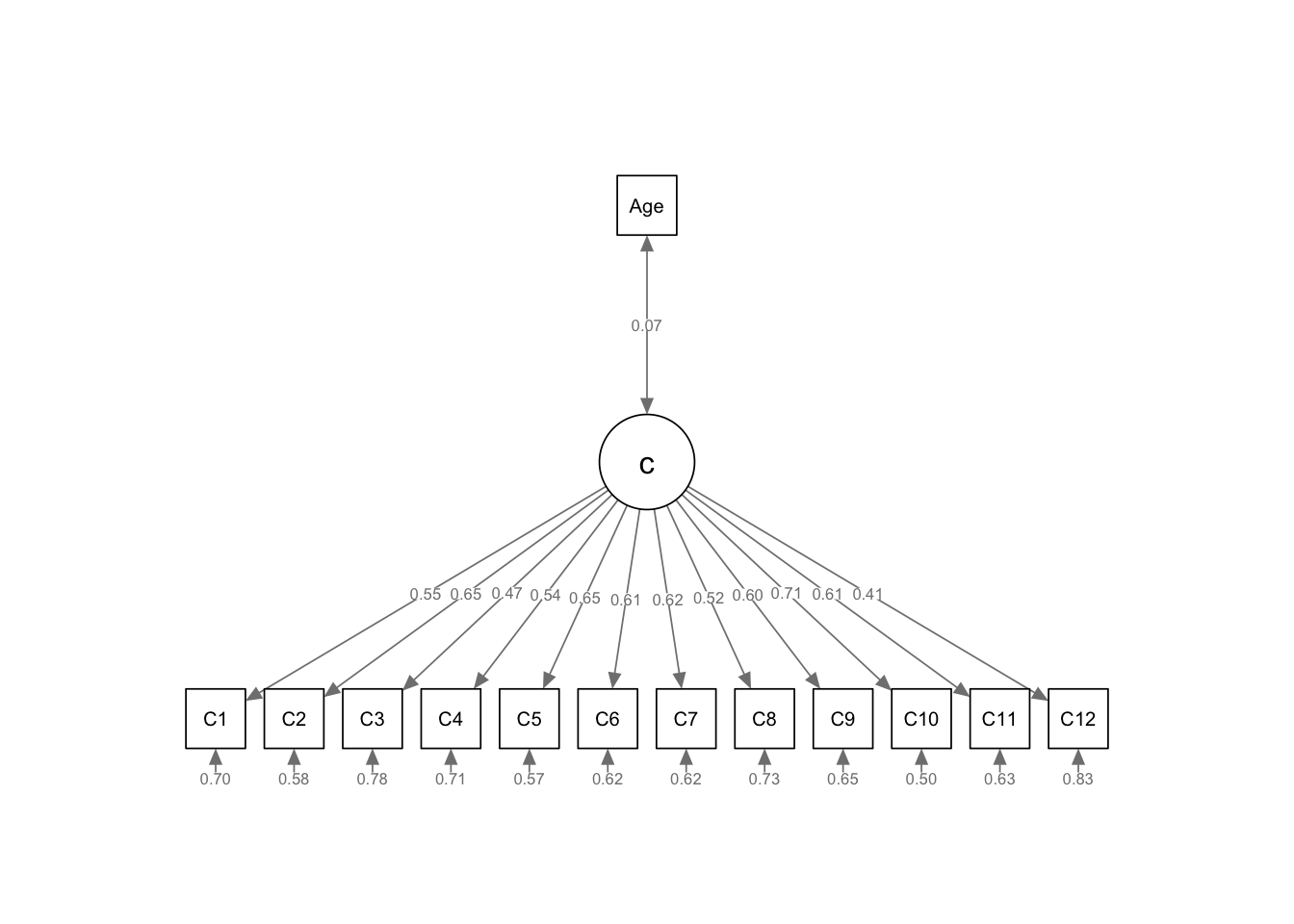 semPlot::semPaths(fit_cfa_C_Age, whatLabels = "std", intercepts = FALSE, style = "lisrel", layout = "tree")