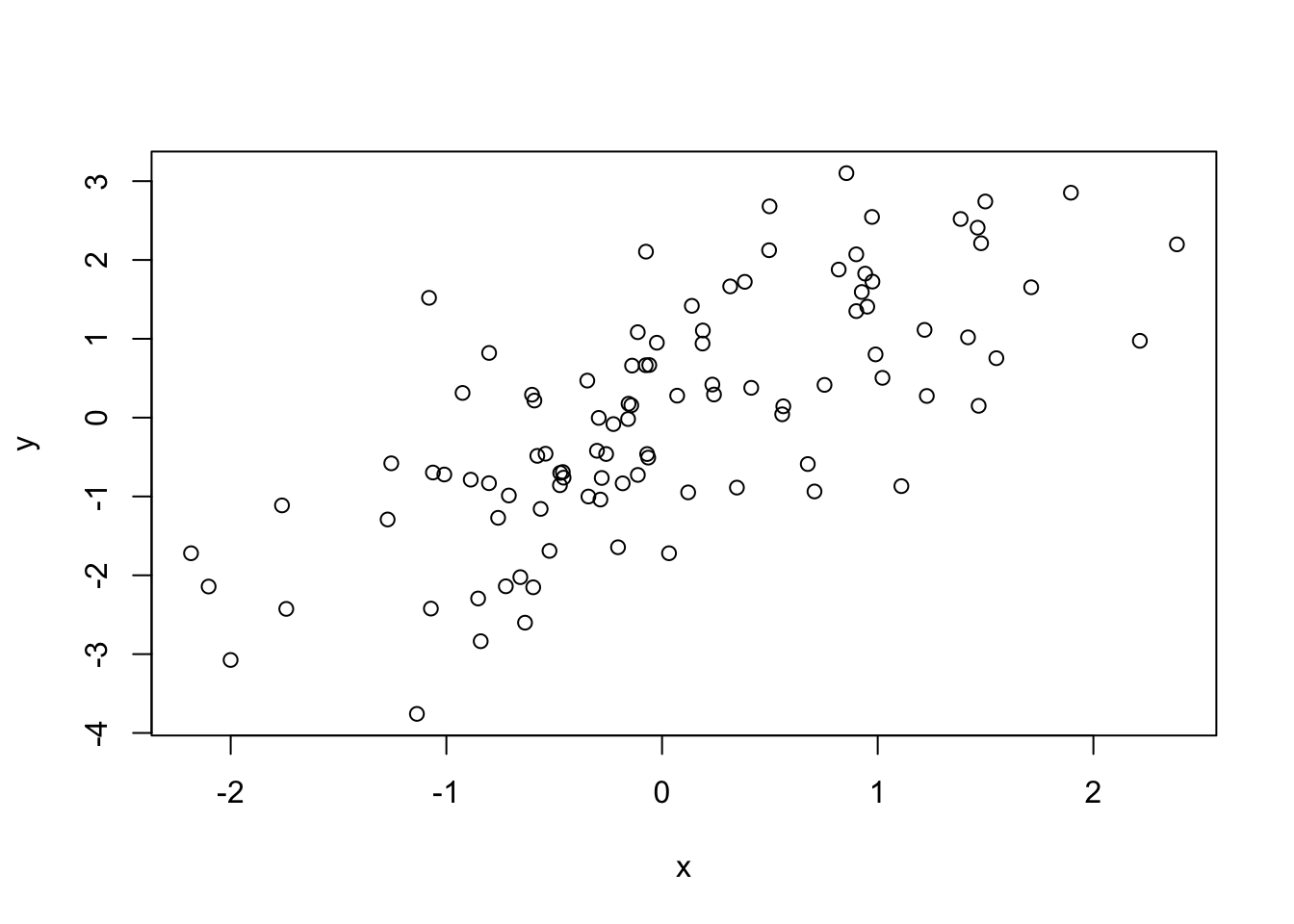 y <- 2 + 0.5 * x + rnorm(n, mean = 0, sd = 1)y <- rnorm(n, mean = 2 + 0.5 * x, sd = 1)