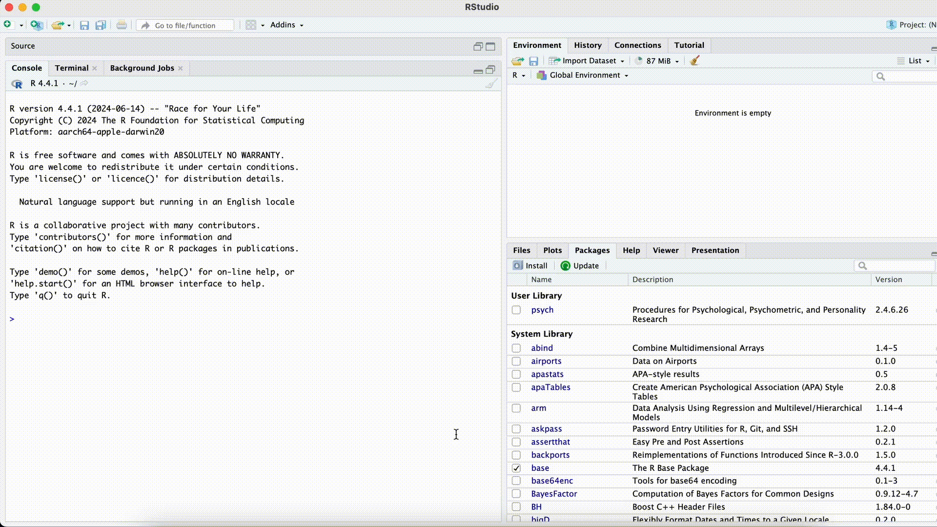 RStudio kann normalerweise sowohl bei Mac als auch bei Windows über die bestehende Version installiert werden, ohne dass wir die alte Version manuell löschen müssen.