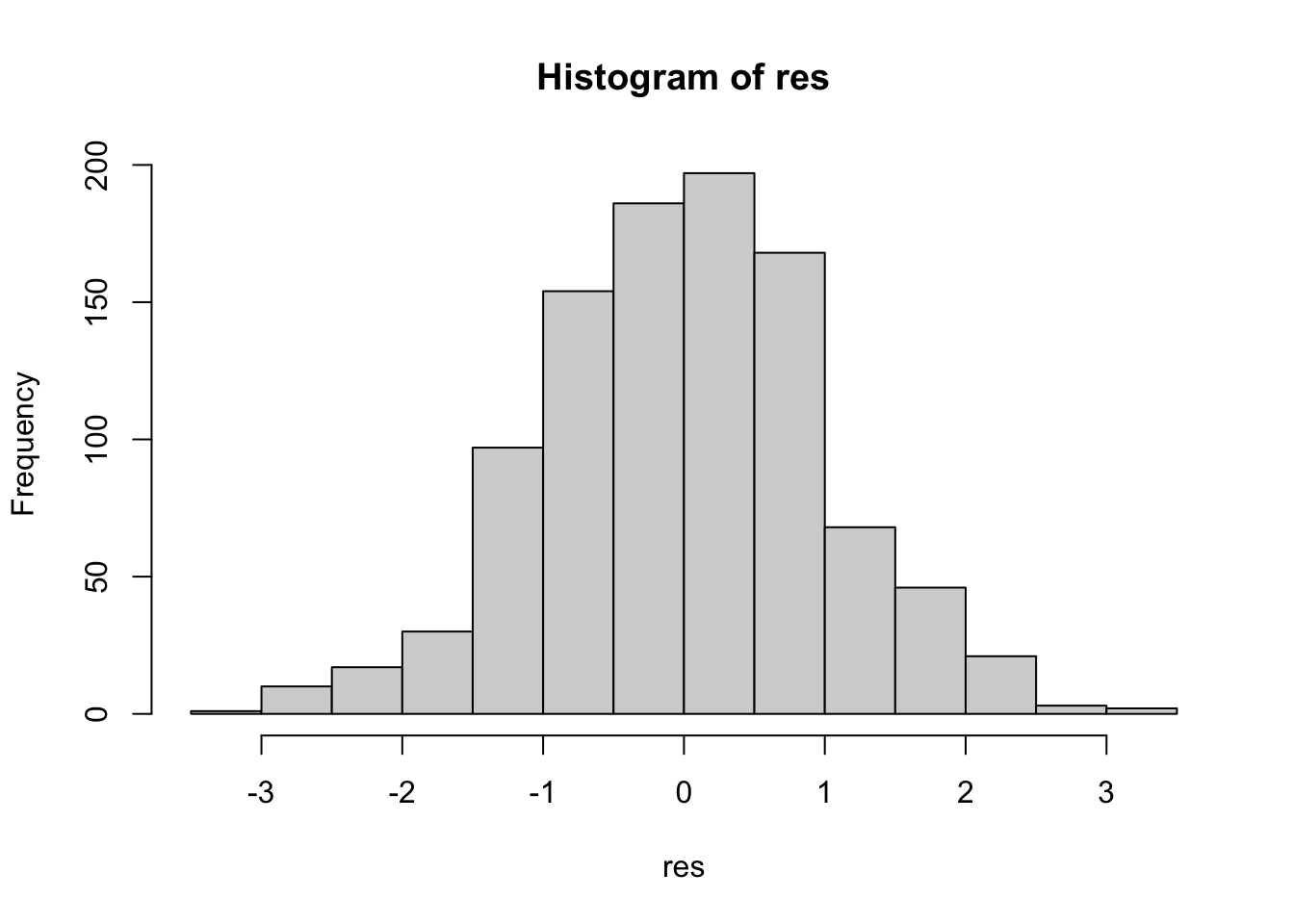 res <-rstandard(fit)hist(res)
