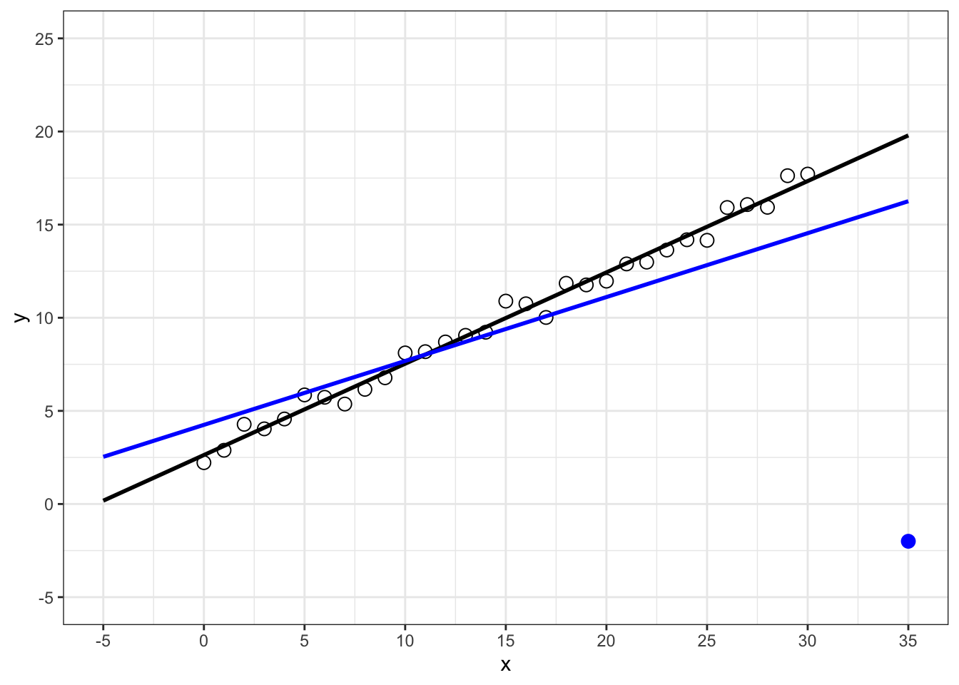Tragen Sie in die folgende Graphik einen Einflusswert ein und veranschaulichen Sie dessen Wirkung, indem Sie eine zweite Regressionsgerade einzeichnen.