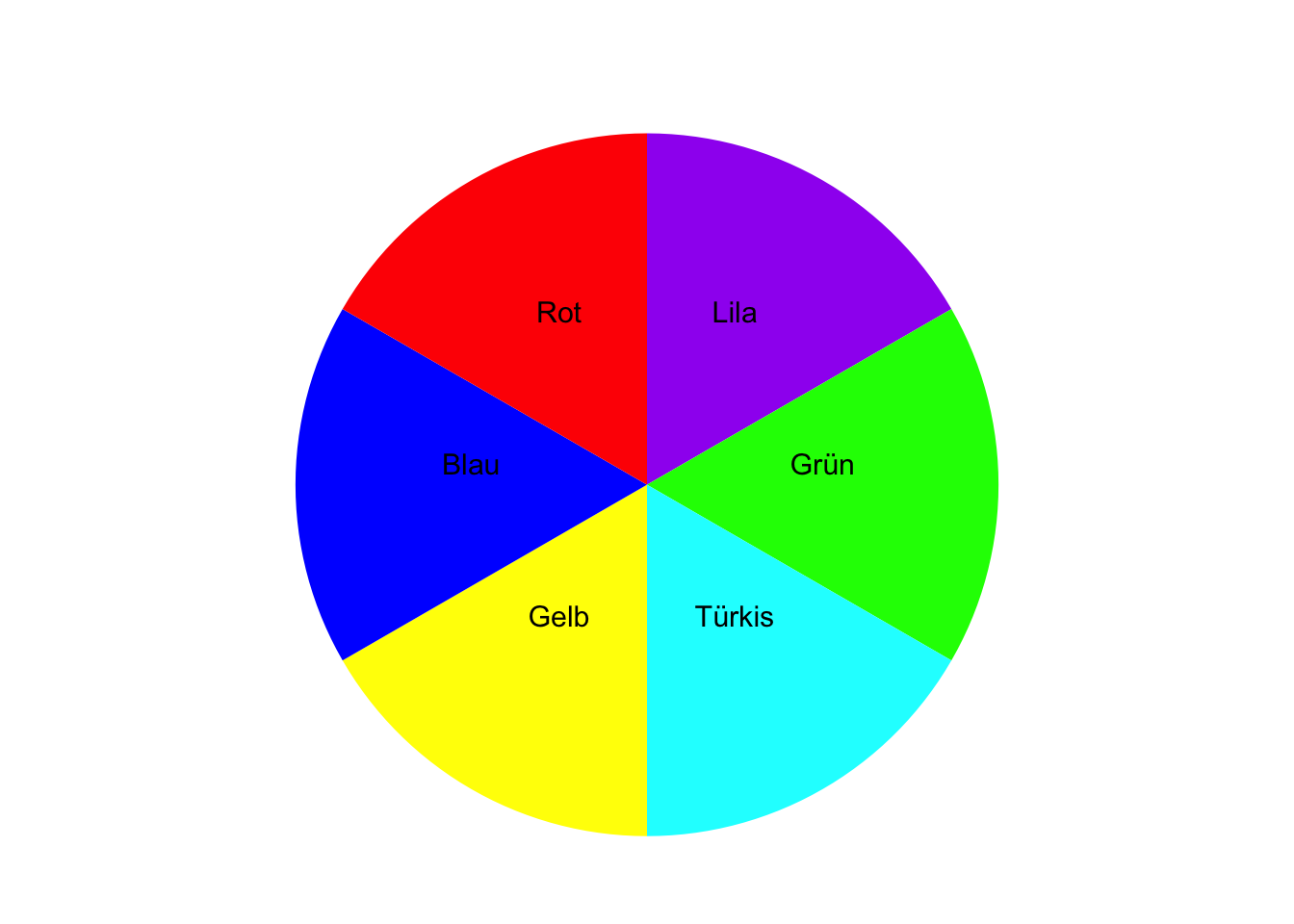 Lösung\(\Omega\) = {Rot, Blau, Orange, Türkis, Lila, Gelb}