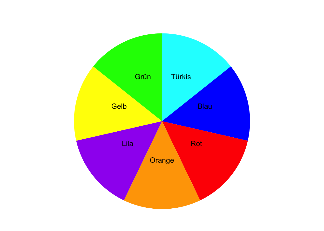 Lösung\(\Omega\) = {Grün, Rot, Orange, Türkis, Lila, Gelb, Blau}