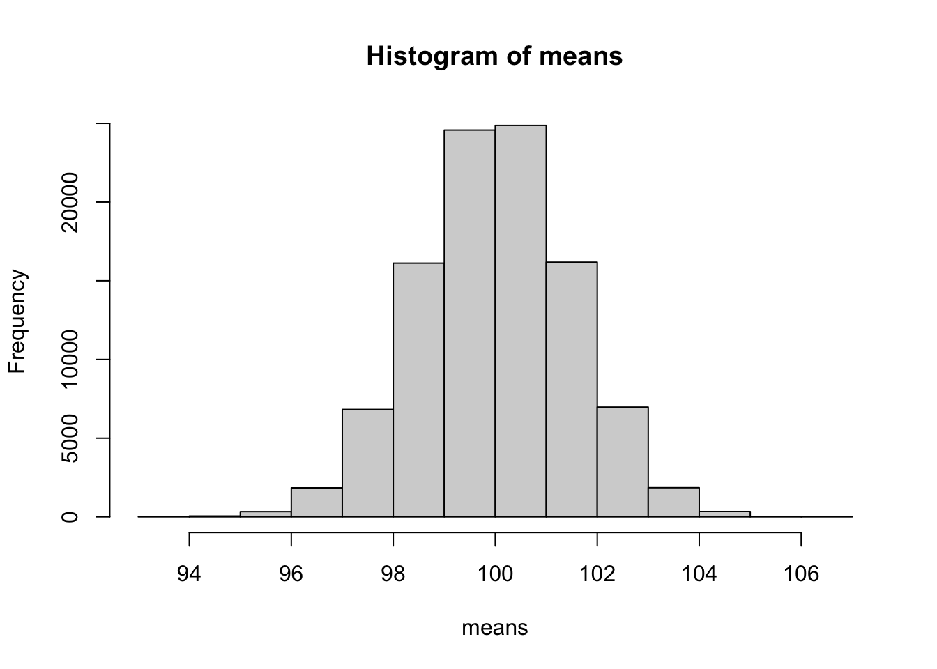 • Simulieren Sie R = 100000 Stichproben der Größe n = 100.